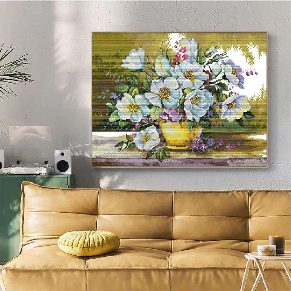 14CT White Flowers Floral Pattern Cross Stitch Kit