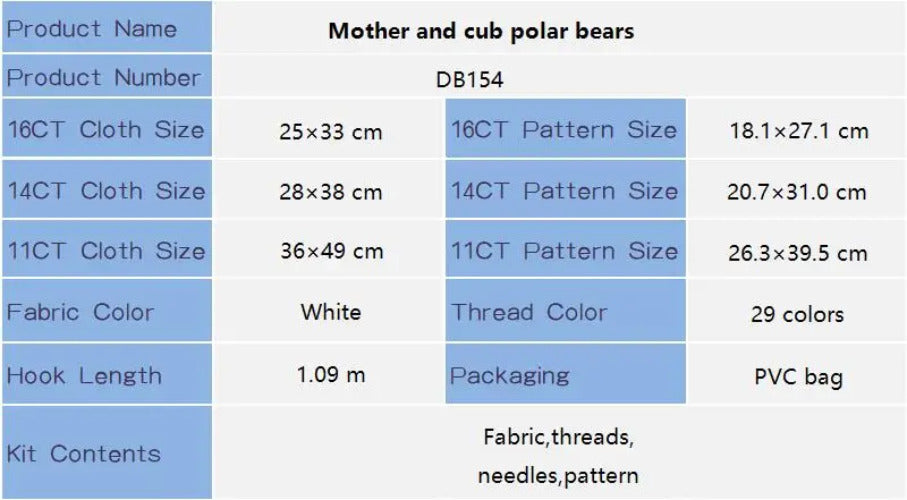 - Premium Aida fabric (11CT, 14CT, or 16CT)