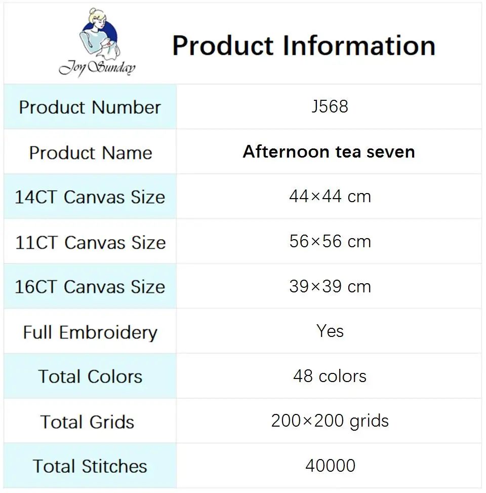 5. White fabric (for example: 14CT White Cloth and 14CT Counted Product), the canvas is white, there is no printed pattern on the canvas,and the embroidery can be performed according to the drawings.