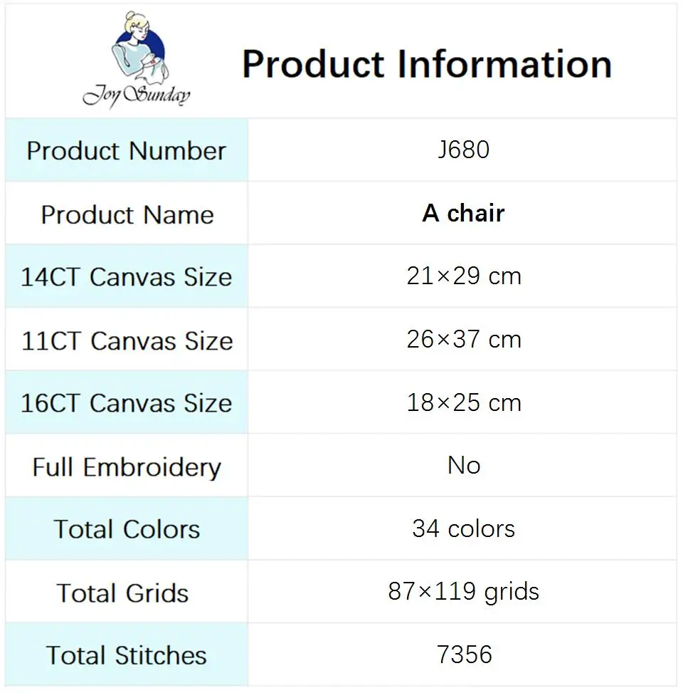5. White fabric (for example: 14CT White Cloth and 14CT Counted Product), the canvas is white, there is no printed pattern on the canvas,and the embroidery can be performed according to the drawings.