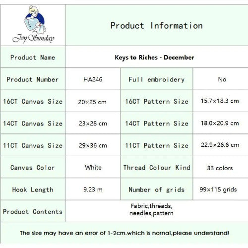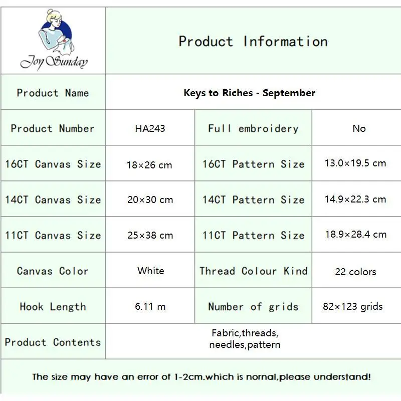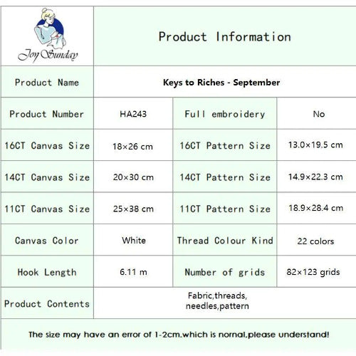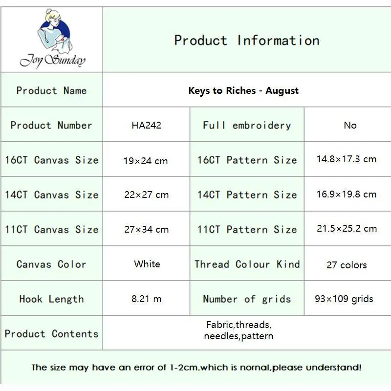 Joy Sunday Cross Stitch Kit – Keys To Riches DIY Embroidery Kit