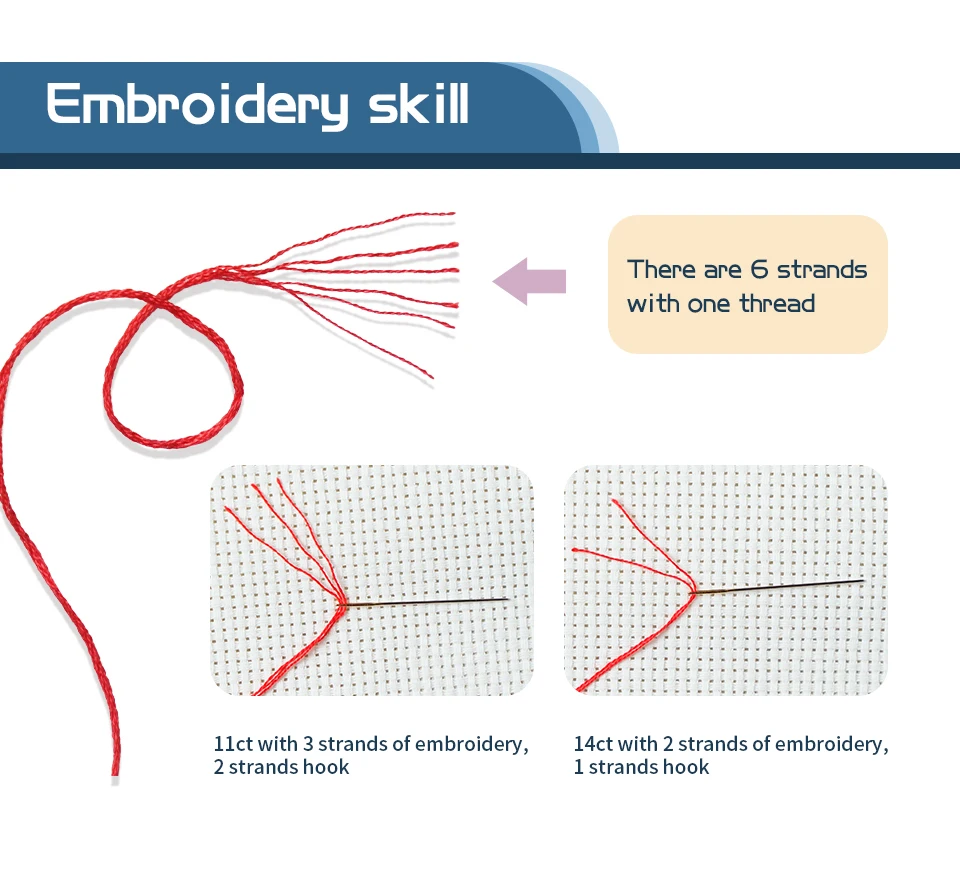 - Thread Guide: Use 2 strands for 14CT fabric. Use 3 strands for 11CT fabric.