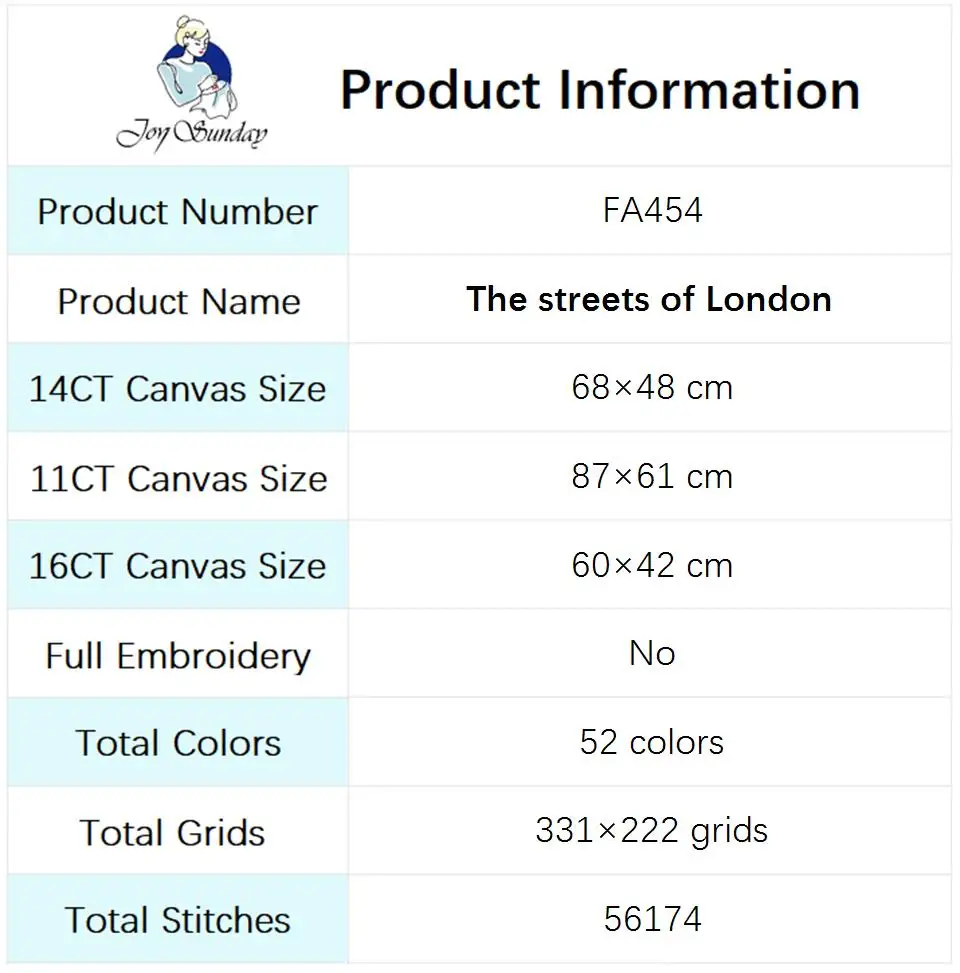 5. White fabric (for example: 14CT White Cloth and 14CT Counted Product), the canvas is white, there is no printed pattern on the canvas,and the embroidery can be performed according to the drawings.