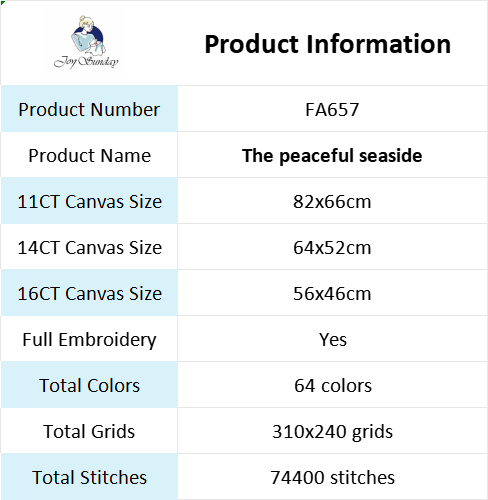 - 16CT (2 Strands): Fabric Size 56×46 cm | Design Size 49.2×38.1 cm