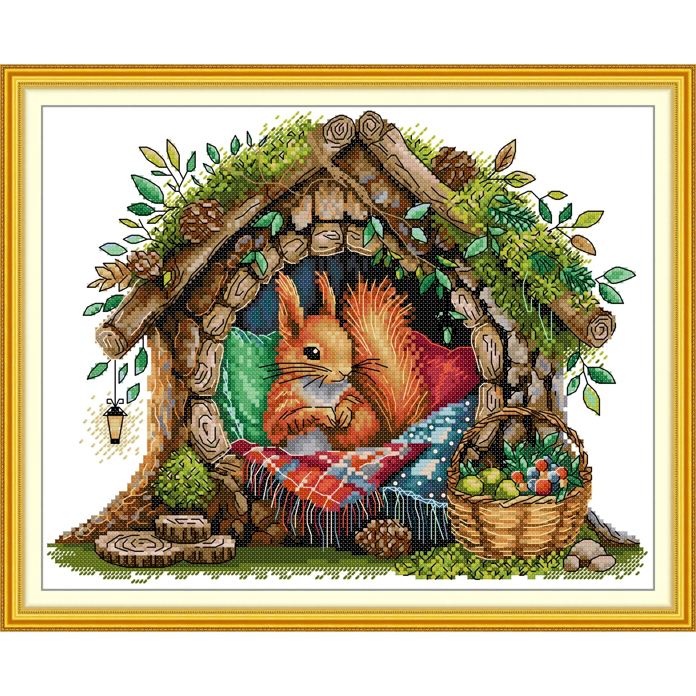 The Squirrel's Home Embroidery Kit - Woodland Animal DIY Cross Stitch Set