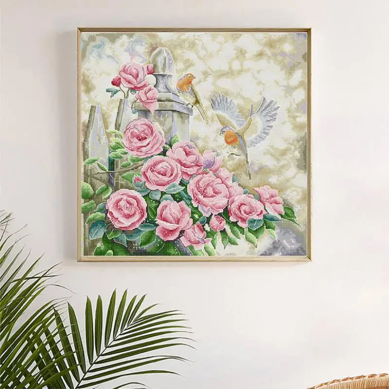 Summer Garden Flower Bird Embroidery Kit - Floral and Bird Pattern Cross Stitch Set