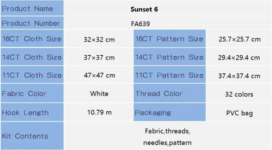 2. The size shown on the cover of the package refers to the size of the embroidery fabric, not the size of the pattern.