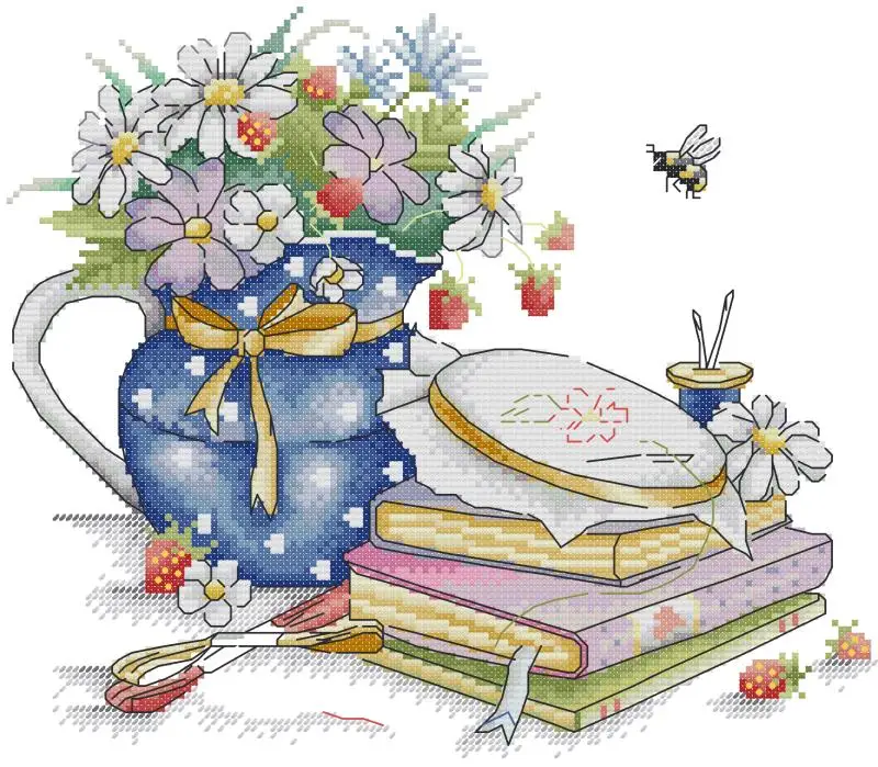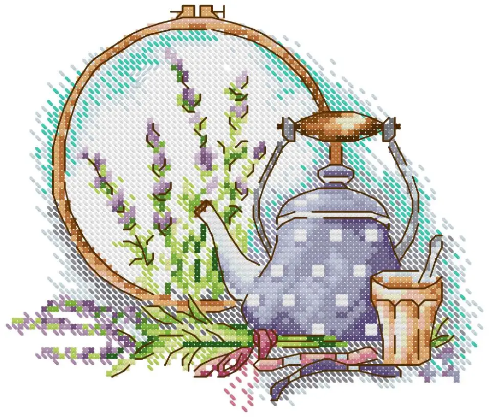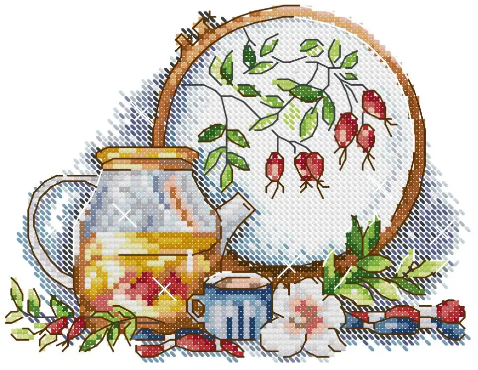 Tea Set and Embroidery Floral Pattern Cross Stitch Kits
