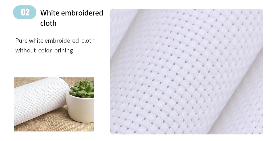 White Fabric Instructions: Blank canvas with no printed pattern. Follow the included paper chart to complete your design.