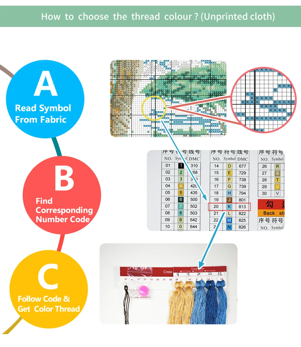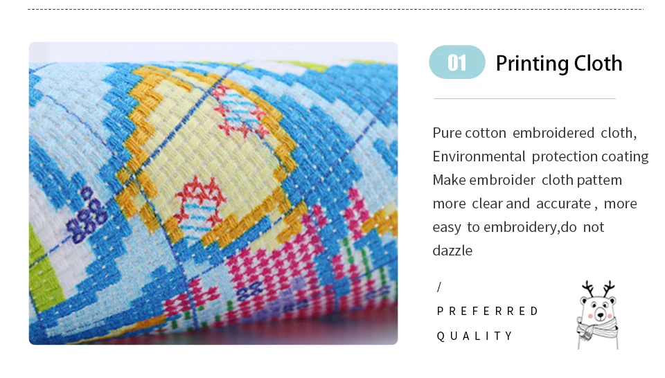 Printed Fabric Instructions: Stamped or pre-printed fabric. Do not wash before completing the embroidery, otherwise the pattern may disappear.