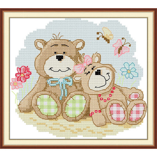 Two Cute Little Bears Cross Stitch Kit – DIY Animal Embroidery for Beginners | Adorable Home Decor Craft