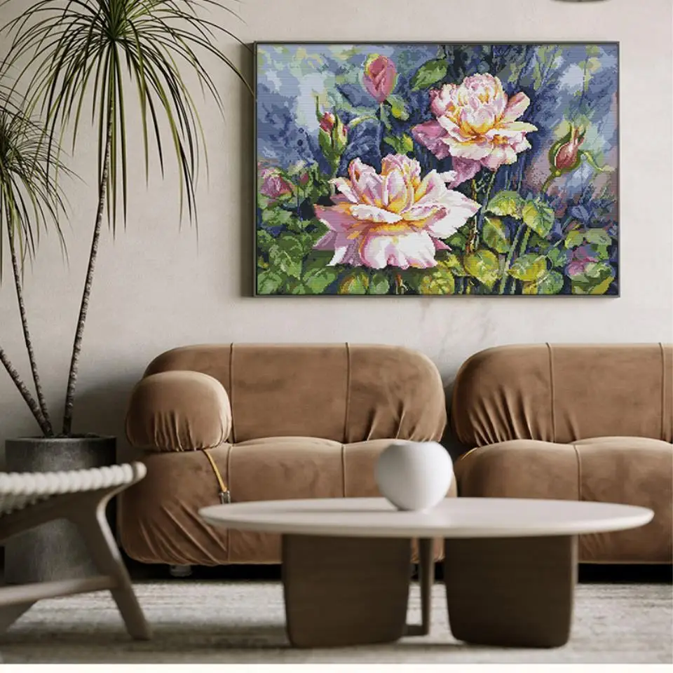 Vintage Roses Oil Painting Floral Cross Stitch Flower Pattern