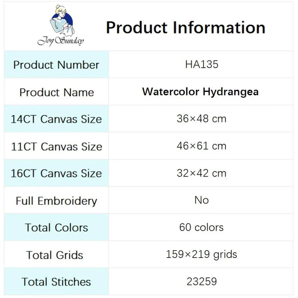 5. White fabric (for example: 14CT White Cloth and 14CT Counted Product), the canvas is white, there is no printed pattern on the canvas,and the embroidery can be performed according to the drawings.